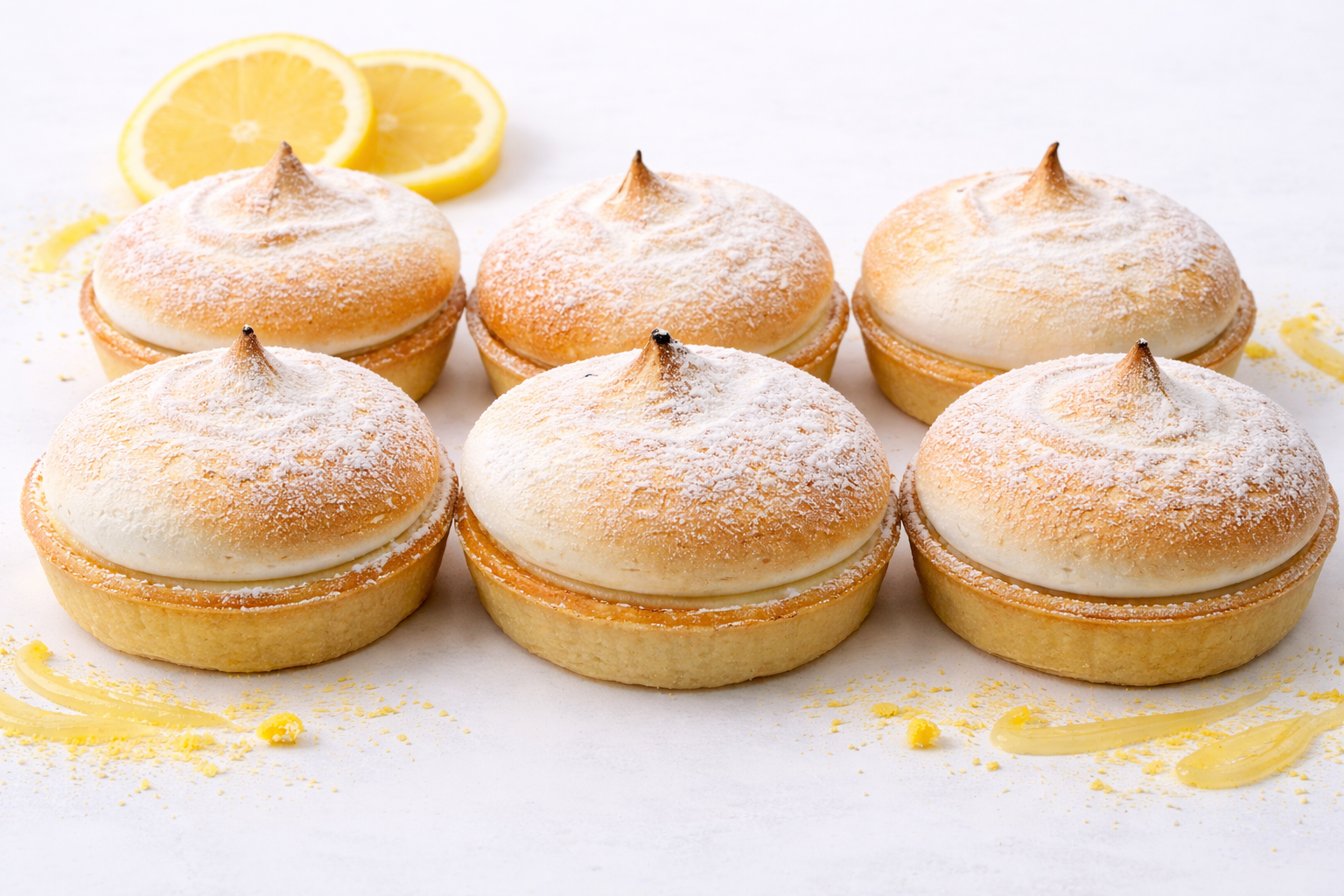 - Vanilla pastry tart filled with a zesty lemon curd and topped with torched Italian meringue.