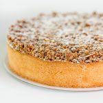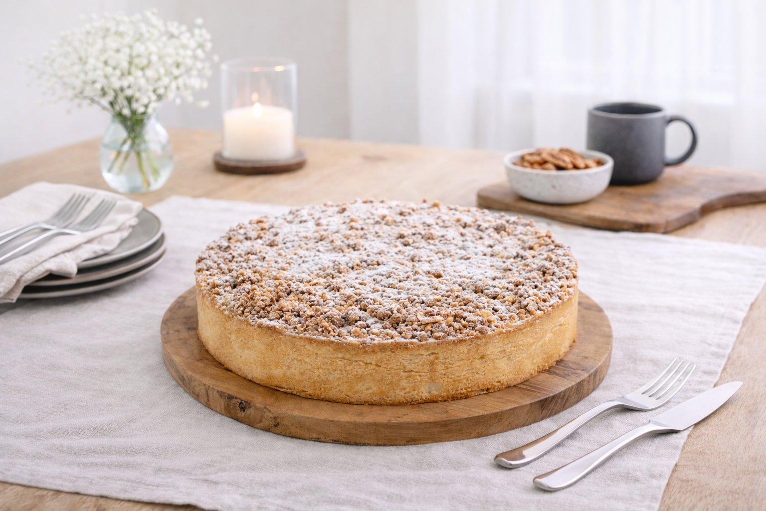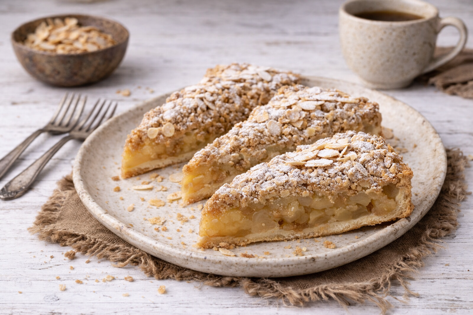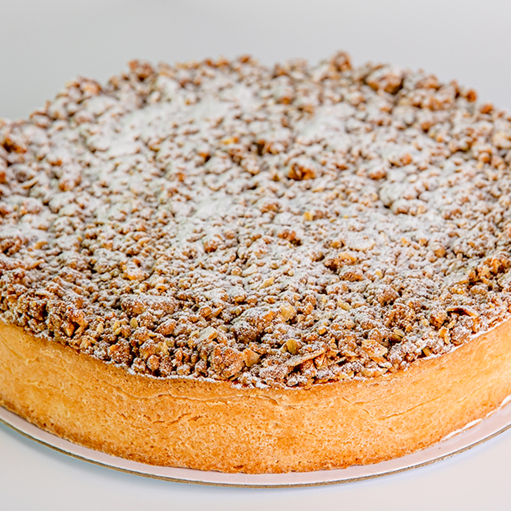 • Vanilla pastry tart filled with cinnamon flavoured apples and topped with an almond streusel.