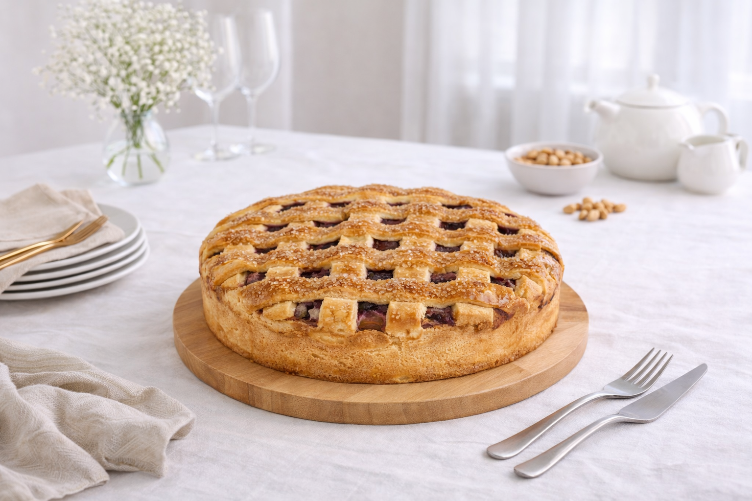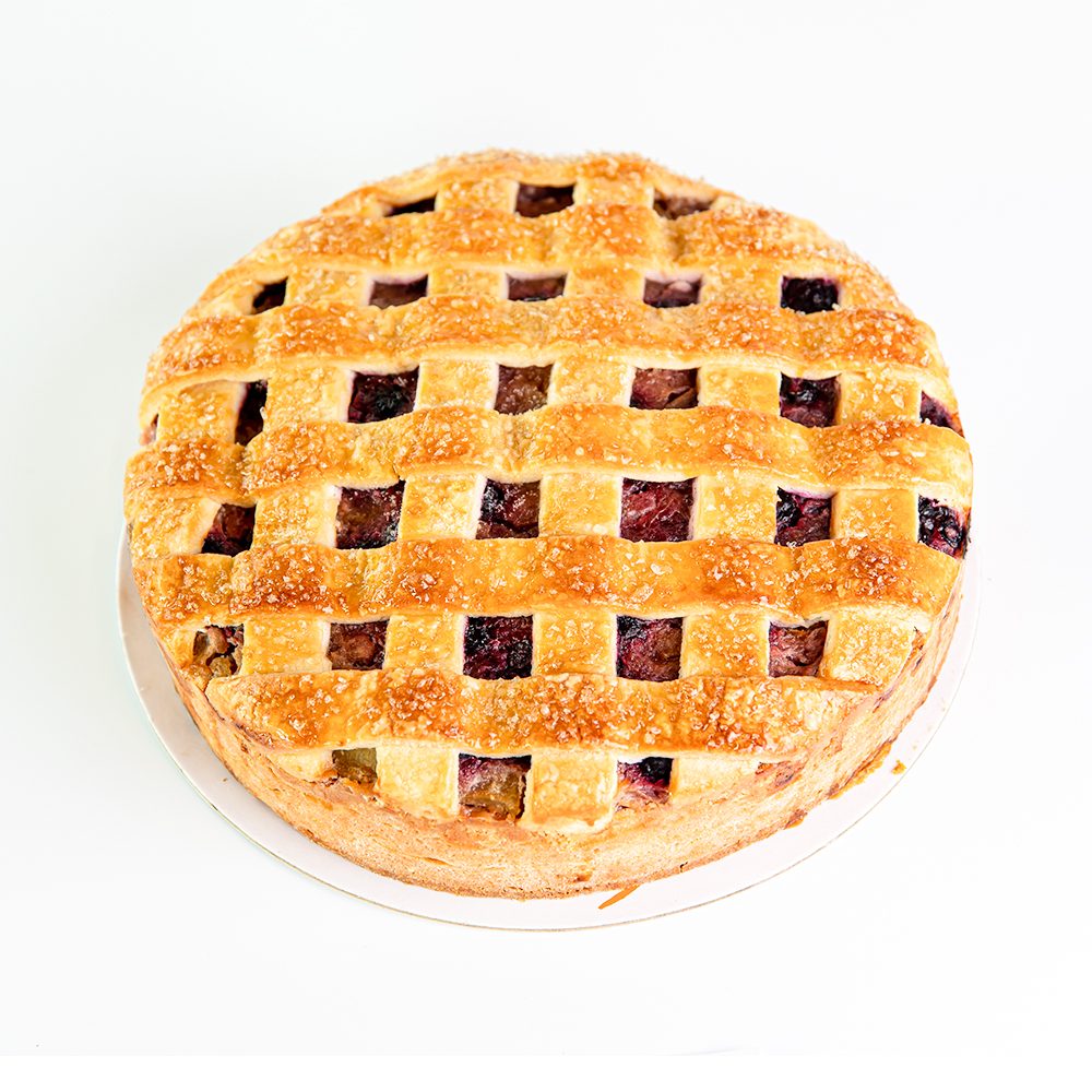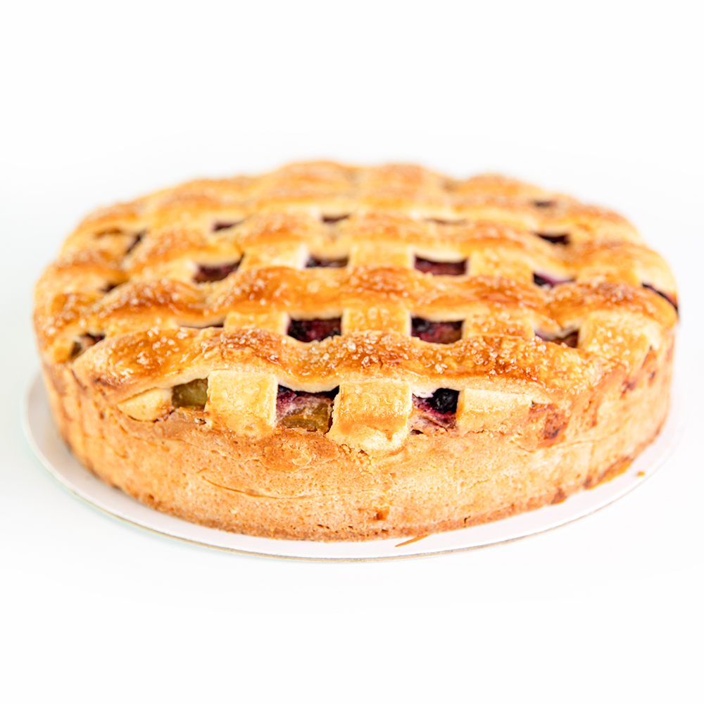 - Vanilla pastry tart filled with apples and blueberries. Topped with a lattice pastry.