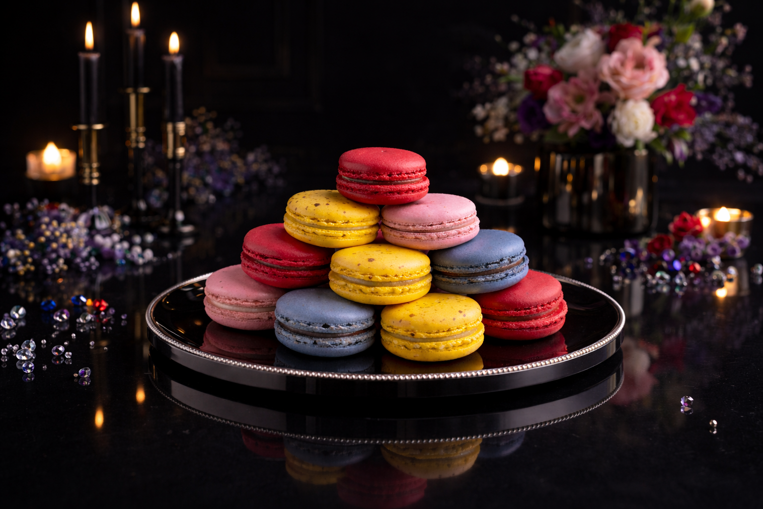 - Assortment of premium macarons pack of 40 (Flavours include: Passionfruit & Other, Raspberry, Blueberry Cheesecake, Strawberry Yoghurt).Pack of 4 Best selling flavours (size : diameter of 45 mm): -Passionfruit & Other-Strawberry Yoghurt-Raspberry -Blueberry Cheesecake- Shelf life: 7 Days Chilled or Frozen 6 months.