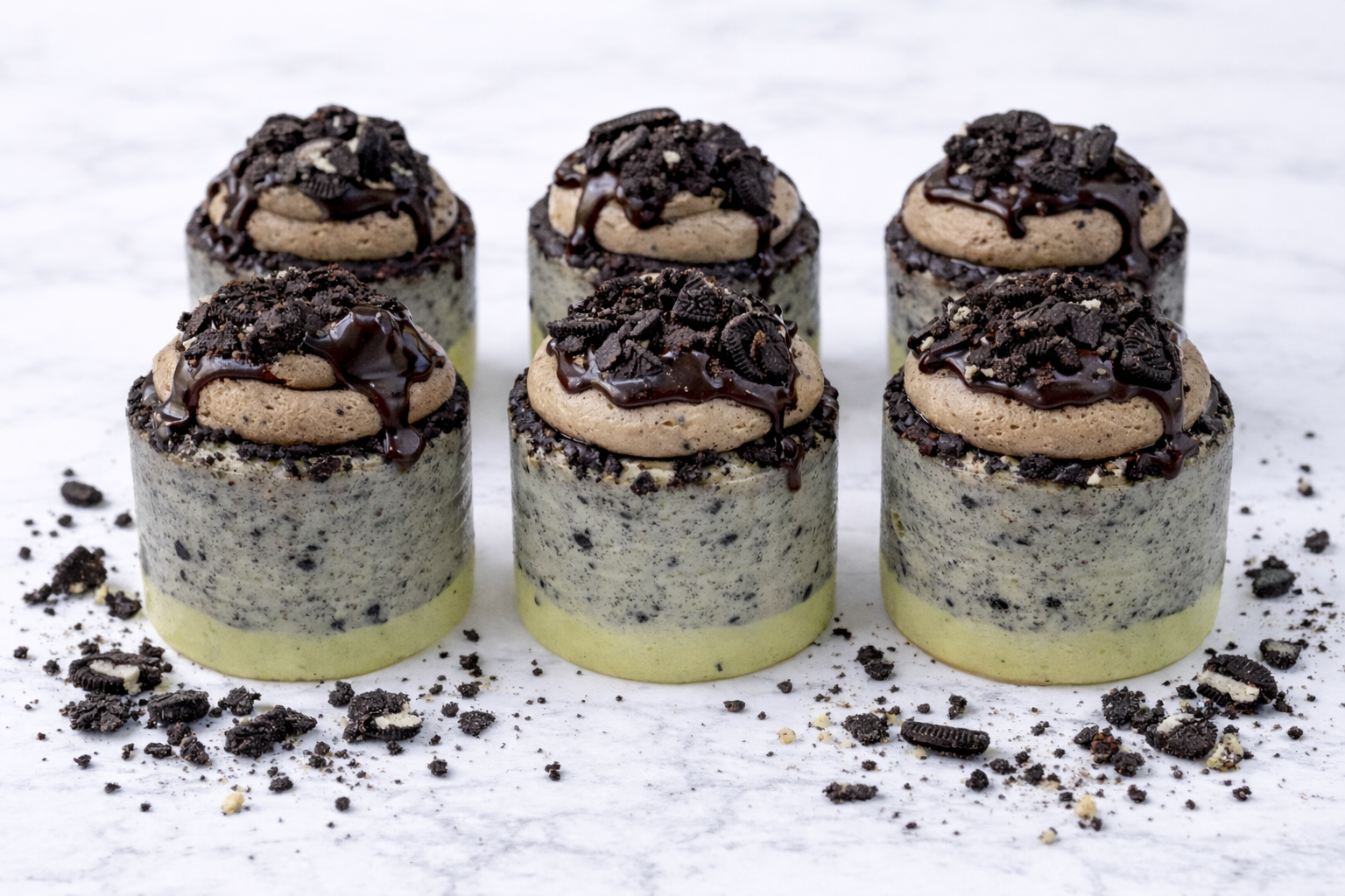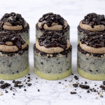 - Baked creamy cheesecake with chocolate mousse & cookie crumbs.