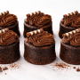 - Rich flourless chocolate cake flavoured with almond meal topped with ganache.