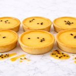 • Vanilla pastry tart filled with passion fruit curd & topped with a passion glaze.