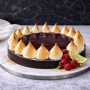 - Chocolate pastry tart filled with lime curd & topped with a raspberry glaze & peaks of torched Italian meringue.