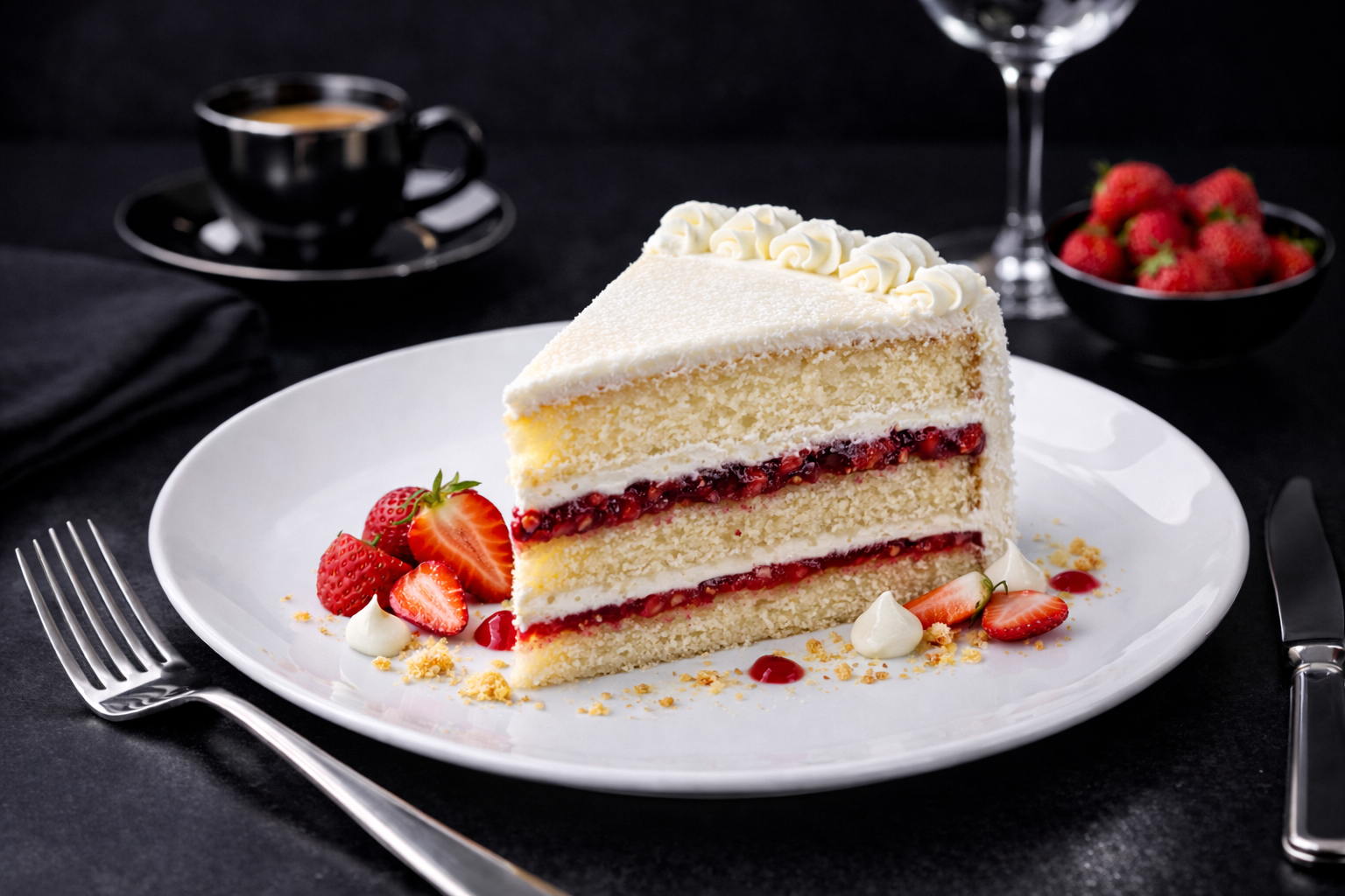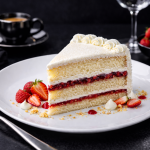 - A simple but delicious moist vanilla cake with layers of raspberry jam filling & vanilla cream decorated with desiccated coconut.